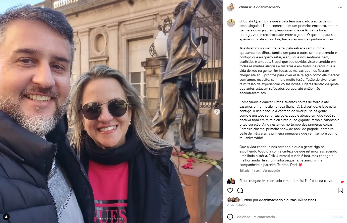 Que a vida continue nos sorrindo e que a gente siga se escolhendo todo dia com a certeza de que estamos escrevendo uma linda história. Feliz quatro meses! A vida é boa, mas contigo é melhor ainda. Te amo, minha pequena. Te amo, minha companheira e parceira. Te amo, Dani <3 ∞
