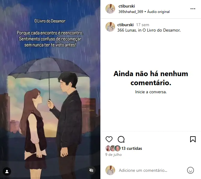 É quando em Santa Cruz, no show de pagode, ficamos dançando os dois a noite inteira. A gente se bastava! Bebendo, fumando de canto (hahaha) e dançando reggae… Lembra que dançamos a música do Djavan um olhando para o outro hipnotizados e apaixonados? Temos essa conexão de carinho e admiração!
